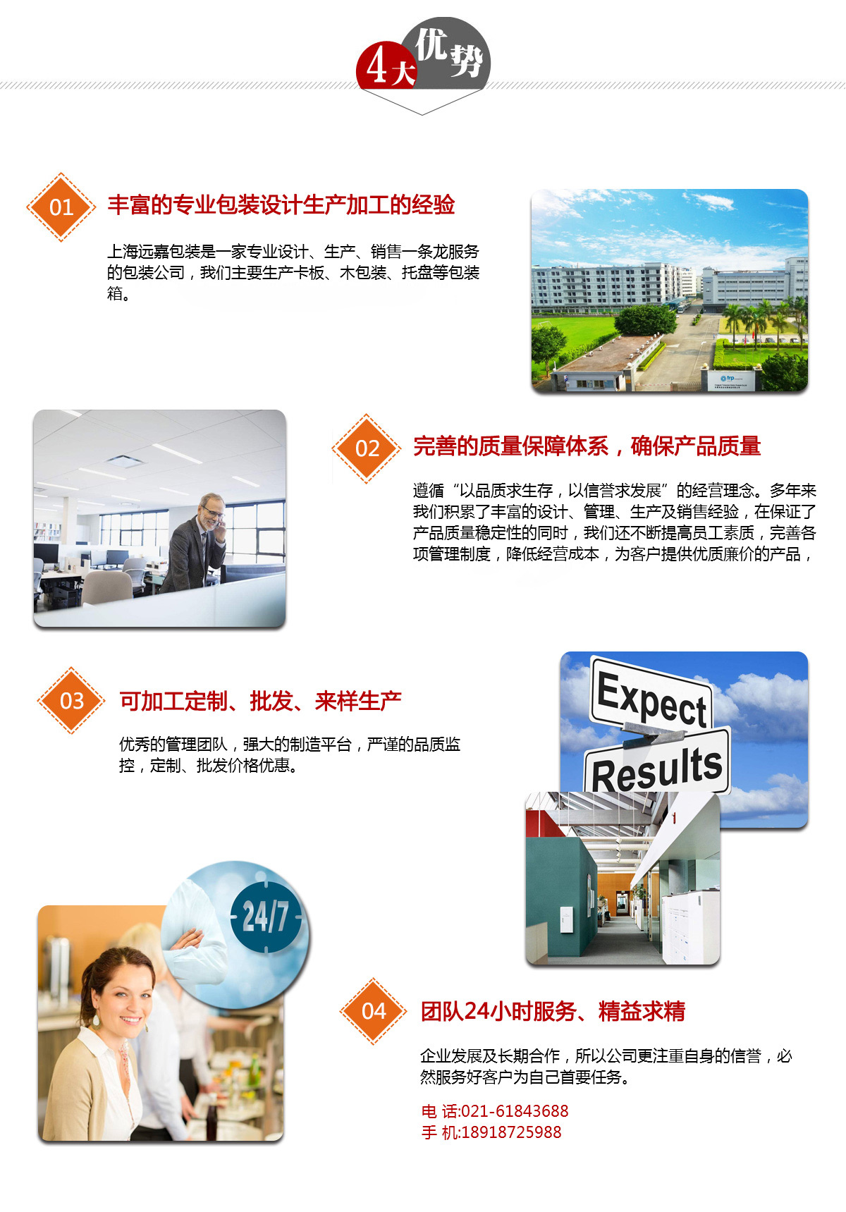 上海遠嘉包裝技術有限公司擁有數(shù)年包裝設計生產(chǎn)經(jīng)驗。為客戶設計定制各類出口包裝箱,木箱包裝,免熏蒸包裝箱,鋼帶箱,扣件包裝箱,花格箱,大型設備包裝箱,實木熏蒸包裝箱,木托盤,熏蒸及免熏蒸托盤,熱縮膜包裝等。